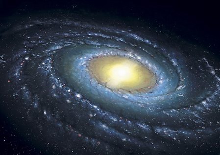 2.1 Milchstraße Wir beginnen mit einer typischen Weltraum-Szenerie: Auf schwarzem Hintergrund häufen sich zahlreiche helle Sterne, im Mittelpunkt ist das Bild weiß.