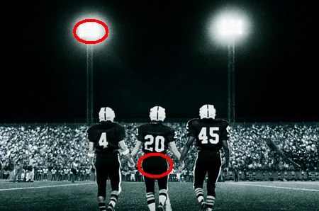 Misst man den Kontrast im Weiß der Scheinwerfer und im Schwarz des Himmels, so wird dieser Verdacht bestätigt, der LCOS gewinnt mit 830:1 gegenüber dem DLP mit 630:1. Anders sieht es aber aus, wenn man Schwarz nicht im Himmel misst, sondern zwischen hellen Partien, sprich beim Publikum. An dieser markanten Stelle entscheidet der DLP Projektor die Messergebnisse nun für sich: 590:1 gegenüber 320:1 des LCOS-Projektors. Dieses Beispiel zeigt: Die Bildplastizität kann innerhalb eines einzigen Bildes regional schwanken, ein allgemeingültiger Wert ist nahezu nicht anzugeben. Dieser Umstand macht die Untersuchung der Materie noch schwerer.