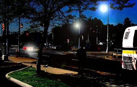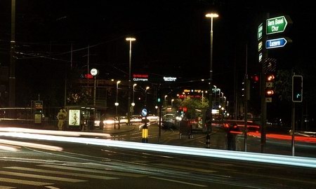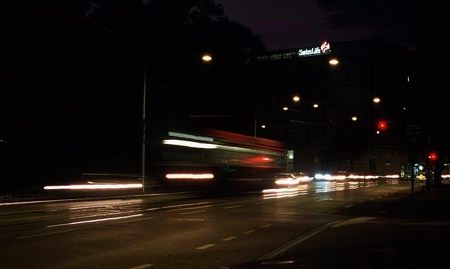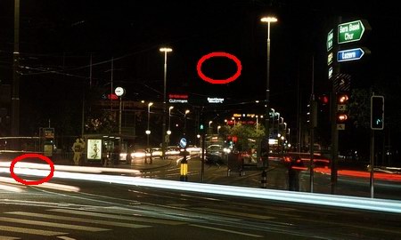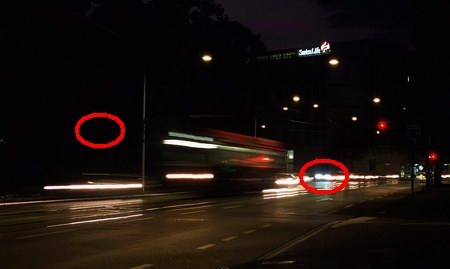 2.8 Straße bei Nacht (1) In der nächsten Szene wird es dunkler, diesmal betrachten wir eine Straßenszene bei Nacht. Auch hier wechseln sich sehr helle und sehr dunkle Bildpartien ab.
