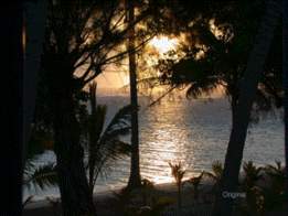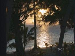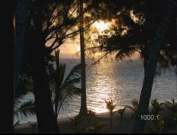 Wir beginnen mit dem sogenannten "On / Off - Kontrast", wie er in den technischen Daten eines jeden Projektors auch immer angegeben wird. Dieser definiert das Verhältnis vom dunkelsten bis zum hellsten Signalpegel, den ein Projektor darstellen kann. Wenn bei 800 Lumen Lichtleistung zwei Lumen Restlicht bei Schwarzdarstellung projiziert werden, liegt der Kontrast bei 800/2 , also 400:1. Um zu verdeutlichen, wie sich der Kontrastwert auf das Bild auswirken kann, hier ein schönes Beispiel: (Bei einem Vergleich der Bilder ist der Einfluss des aktuell verwendete Ausgabemediums -Bildschirm oder Ausdruck- zu beachten!) Das Original, ein Sonnenuntergang unter Bäumen. Das Bild hat räumliche Tiefe, es wirkt natürlich.
