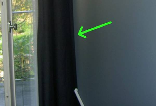 Trotz der immensen „LightPower“ der Beamer haben wir die Leinwand nicht „irgendwo“ aufgehängt, sondern an einen strategisch günstigen Platz in unserem Testraum 2, schließlich wollen wir in naher Zukunft auch „normale“ Projektoren in Verbindung mit der Blackscreen prüfen. Wir wollen die Leinwand vor unserer fest installierten, mattweißen Rahmenleinwand installieren. Sie befindet sich direkt neben einer Balkontür, was einer typischen, wohnzimmerüblichen Positionierung sehr nahe kommt.