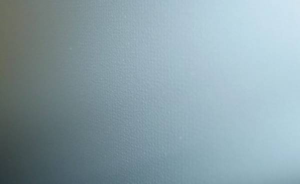 Objektive Negativpunkte handelt sich das Tuch in seiner dunklen Beschichtung ein: Zwar ist es absolut gleichmäßig gefärbt und ausreichend matt für eine gleichmäßige Lichtstreuung in allen Winkel, doch gegen das Licht sieht man leichte Unterschiede in der Oberflächenstruktur, sie wirkt in manchen Bereichen etwas rauer als in anderen. Ob sich das auf die Bilddarstellung auswirkt, werden wir im Bildteil noch genauer untersuchen.