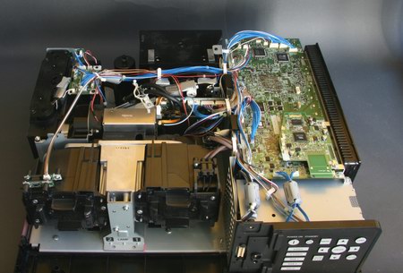 In seinem Inneren sorgt nicht nur eine UHP-Lampe für das notwendige Licht, sondern derer gleich zwei. Wo viel Licht ist, ist auch Wärme. Da aber ausgerechnet die LCDs sehr empfindlich auf zuviel Wäre reagieren, hat man sie in diesem Profi-Projektor flüssigkeitsgekühlt: