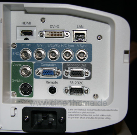 Bei den Anschlüssen wird deutlich, dass es sich u ausgewiesene Profigeräte handelt. Die große Anzahl der Eingänge sind in höchstwertigen Formen umgesetzt, leider vermisst man dadurch Kino-typische Eingänge wie HDMI: Beim Panasonic fehlt ein HDMI Eingang gänzlich, man muss entsprechende Konverterstecker einsetzen, der Epson spendiert immerhin einen HDMI-Anschluss und hat daher die Nase vorn.
