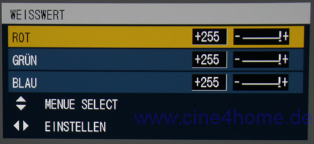 Tatsächlich bietet der €10,000.- Projektor nur absolut minimalistische Einflussmöglichkeiten auf das Bild, Gamma-Equalizer, getrennte RGB Regler für Gain- & Bias sowie ein vielseitiges Colormanagement sucht man vergebens.
