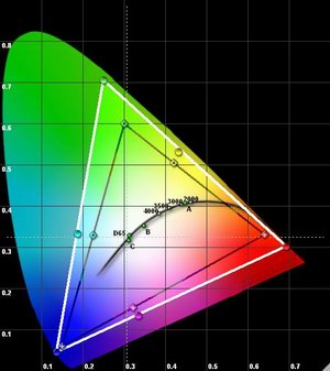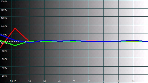 Mit obiger Grünschwäche muss man also leben, auch wenn diese ebenfalls noch vertretbar ausfällt. Etwas Boden gut macht der Panasonic durch seine differnzierten RGB-Regler, mit denen uns eine hervorragende Abstimmung auf die D65-Farbtemperatur der Videonorm über alle Helligkeiten hinweg gelungen ist.