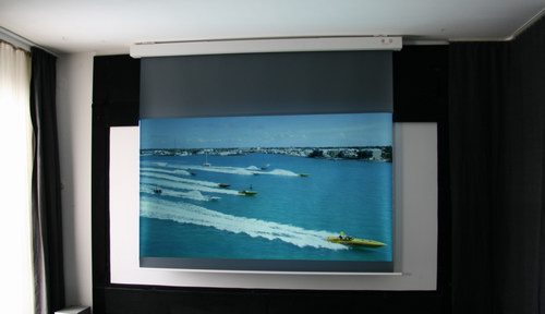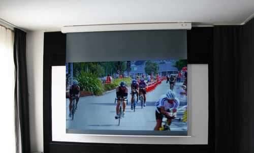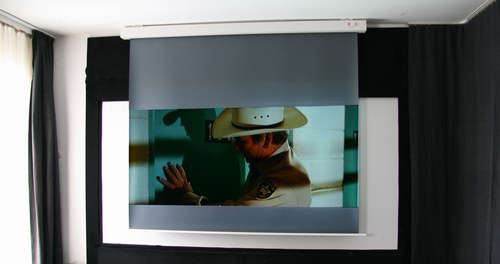 Für ein überzeugend gutes Ergebnis ist allerdings eine gewissenhafte Raumplanung und Komponentenwahl: Die BlackScreen darf nicht in direktem Sonnenlicht stehen, und sollte gleichmäßig beleuchtet werden, um Abschattungen zu vermeiden. Da es sie derzeit auch nur in einer einzigen Größe gibt (2m Breite), muss man die Bildhelligkeit über die Lichtleistung des Projektors steuern. Erst ab 2500 Lumen werden Installationen so möglich.