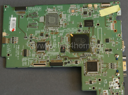 Wir entfernen die Signalelektronik, auf der sich keine besonderen Komponenten oder Chips befinden, es handelt sich bei der Bestückung um typische DMD-Steuerchips aus dem Hause Texas Instruments.