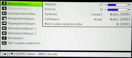 Soweit die Technik, doch was für ein Bild präsentiert sich nun auf der Leinwand? Zeigt es gegenüber herkömmlichen UHP-Projektoren Stärken, oder bergen sich vielleicht gravierende Nachteile? Um dies zu beurteilen, nehmen wir den Beamer in Betrieb und befassen uns zunächst mit den Einstellmöglichkeiten des Bildmenüs.