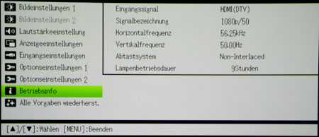 Unter "Betriebsinfo" schließlich erhält man nützliche Informationen zum eingespeisten Videosignal. Gerade bei PCs, die nicht selten nicht das tun, was sie sollen, ist so eine Kontrollmöglichkeit willkommen.