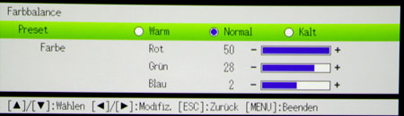 Leider bietet der Projektor auch keinerlei Color-Management, so dass der Anwender auch nicht auf eigene Faust den Farbraum optimieren kann. Hier ist für die nächste Generation eindeutig eine Verbesserung vorzusehen.