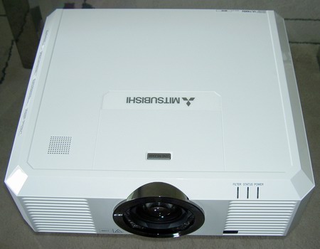 Auf den ersten Blick fällt das für einen AV-Beamer ungemein elegante Design auf. Durch den symmetrischen Aufbau mit „Facettenschliff“ im weißen Gewand beweist Mitsubishi, dass ein Profigerät auch gut und der Preisklasse entsprechend aussehen kann.