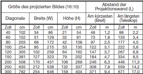 - Bei der Installation muss er die anvisierte Bilddiagonale aus den unterschiedlichsten Abständen und Positionen füllen können, damit er optimal an die Raumbegebenheiten angepasst werden kann.