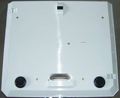 Für die Deckenmontage befinden sich auf der Projektoren-Unterseite fünf zufällig verteilte M6 Gewinde, in die eine maximale Schraubenlänge von 10mm geschraubt werden kann. Auf Mindestabstände zur Halterungsplatte muss nicht geachtet werden, da sich auf der Unterseite keinerlei Belüftungsschlitze befinden.