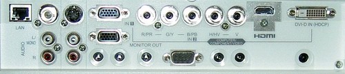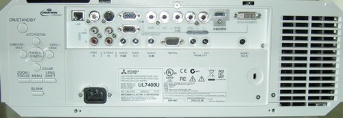 Mit LAN-, Serial- und Klinkenbuchsen ist der Mitsubishi UL7400U komplett Netzwerk- und Automatisierungstauglich. Digitale Eingänge sind als HDMI- und DVI- ausgeführt, mehr Digitalbuchsen wären aber wünschenswert in Anbetracht der derzeitigen Multimedia-Entwicklungen.