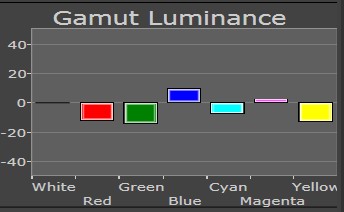 Auch das überbetonte Blau kann man dem UL7400U mittels CMS abgewöhnen und alle Farbhelligkeiten in ein akkurates Verhältnis zum Weißpegel einsteuern. An dieser Messung zeigt sich, dass der Projektor mit seiner 3LCD Technologie nicht nur Weiß, sondern auch alle Farben strahlend hell projizieren kann.