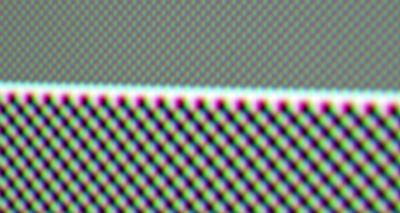 Nicht perfekt zeigte sich unser Testgerät in der Konvergenz der drei Grundfarben: Vor allem in der linken Bildhälfte machten sich Magenta-Farbsäume bemerkbar, was die Schärfe von kleinen Details oder Schriften beeinträchtigen kann. Ein nachträgliches Konvergenzmenü bietet der UL7400U leider nicht, so dass die Konvergenz nicht nachträglich verbessert werden kann.